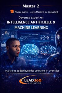 Le Master 1 en Intelligence Artificielle & Machine Learning de Lead360 Consulting est un programme spécialisé, 100 % en ligne, destiné aux cadres, ingénieurs, analystes, managers et professionnels souhaitant comprendre, exploiter et appliquer les technologies de l’intelligence artificielle et du machine learning dans un cadre professionnel.